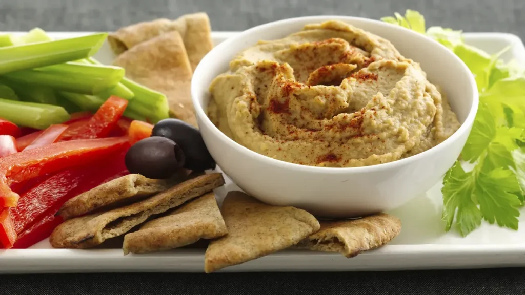 Made with pureed chickpeas, tahini, olive oil, lemon juice, and garlic, hummus is a creamy and delectable Middle Eastern dip; moreover, it pairs perfectly with bread or vegetables. It also offers the ideal blend of flavor, nutrition, and tradition and is a healthy and adaptable dish that may be eaten with bread, vegetables, or as a spread.