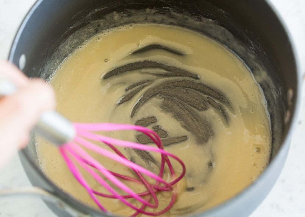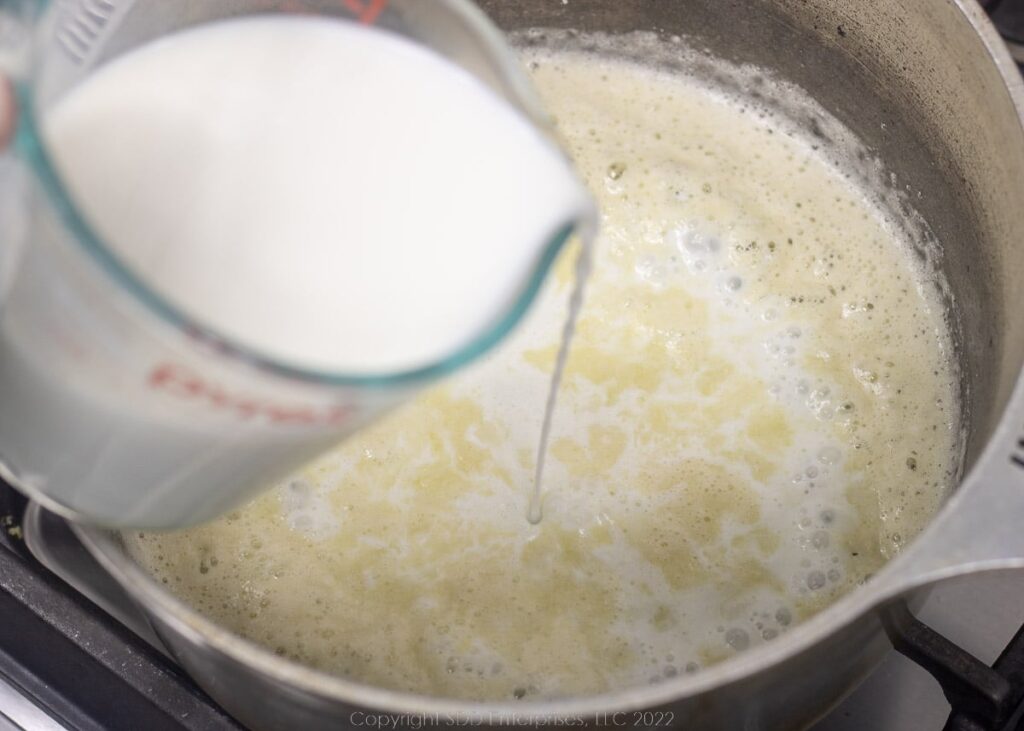 Next, gradually whisk in the milk.Continue stirring until the mixture becomes smooth and thickened.